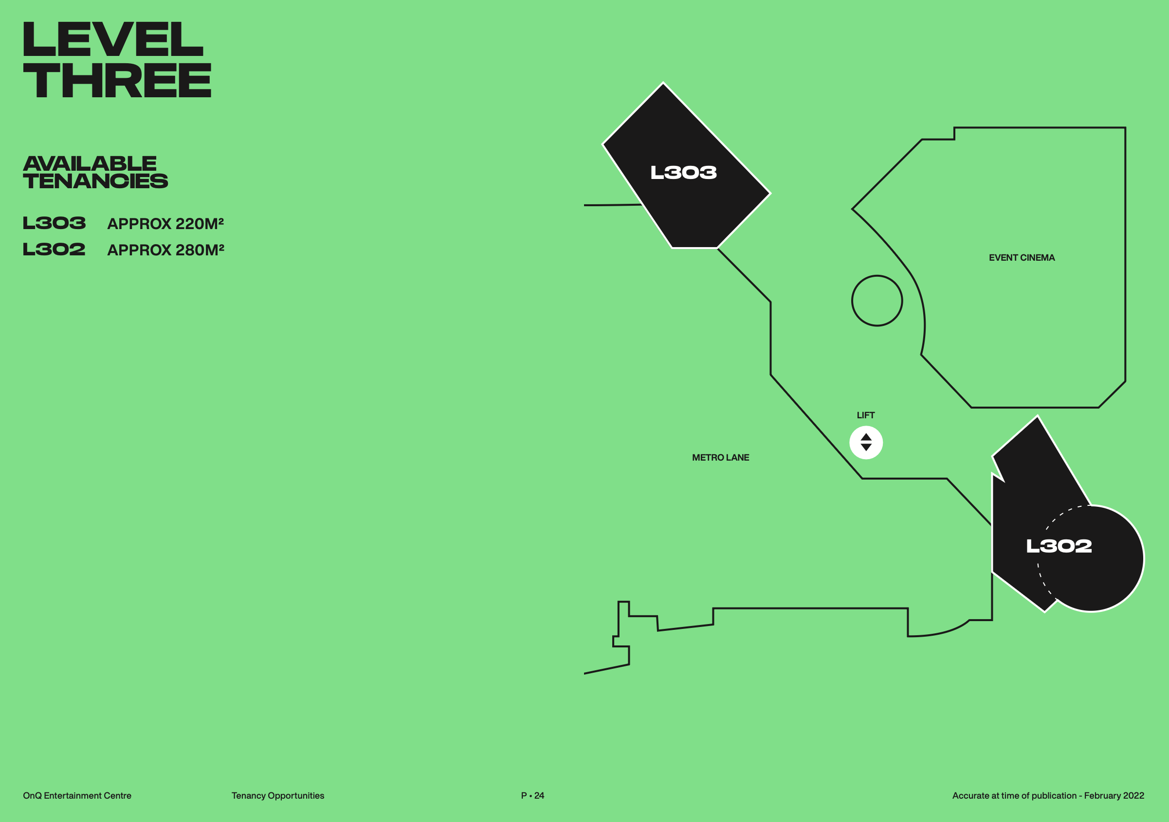We are developing three large, exterior LED screens - on the Queen St Drum Tower, facing Aotea Square and above the new Bledisloe Lane entrance. These will significantly increase the visibility of OnQ and provide advertising opportunities for tenants. The internal signage will also be getting an upgrade throughout the centre.